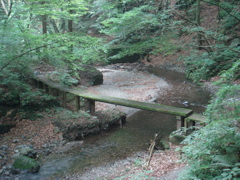 川の源流まで辿る山道の途中にかかる橋。