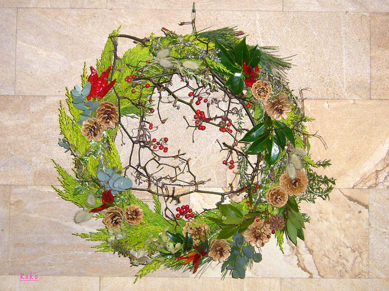 明るめのリース 目に心地良いです。