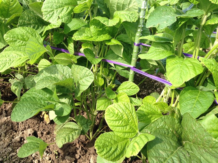 倒伏防止と実入りの向上を目的に紐を張りました