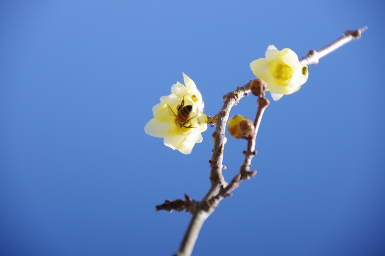 蠟梅(ロウバイ)の蜜を味わう蜂。その蜂蜜を、味わわせてほしい...