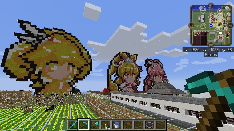 マインクラフトでキュアピース・キュアハート・キュアハッピーのドット絵