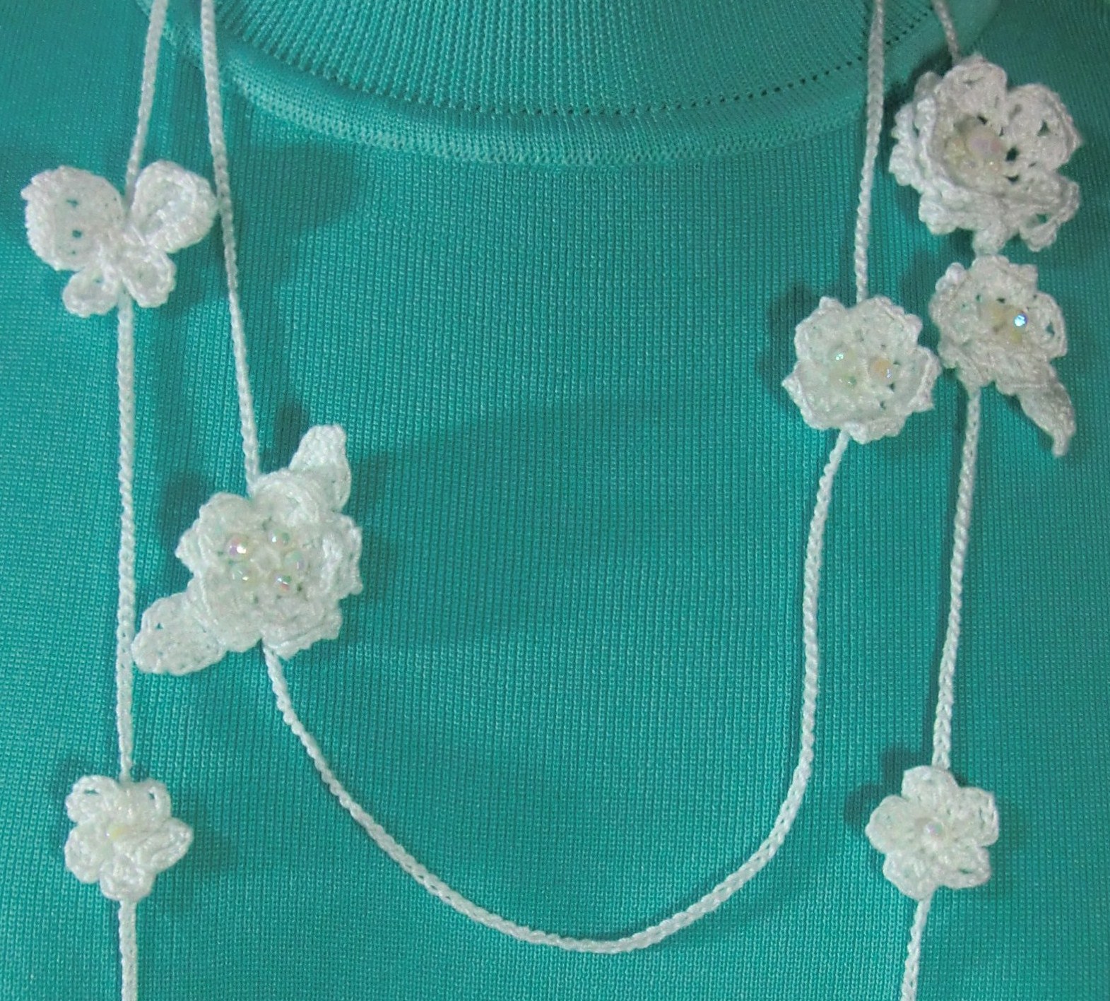 6。 蝶と小花のホワイトラリエット