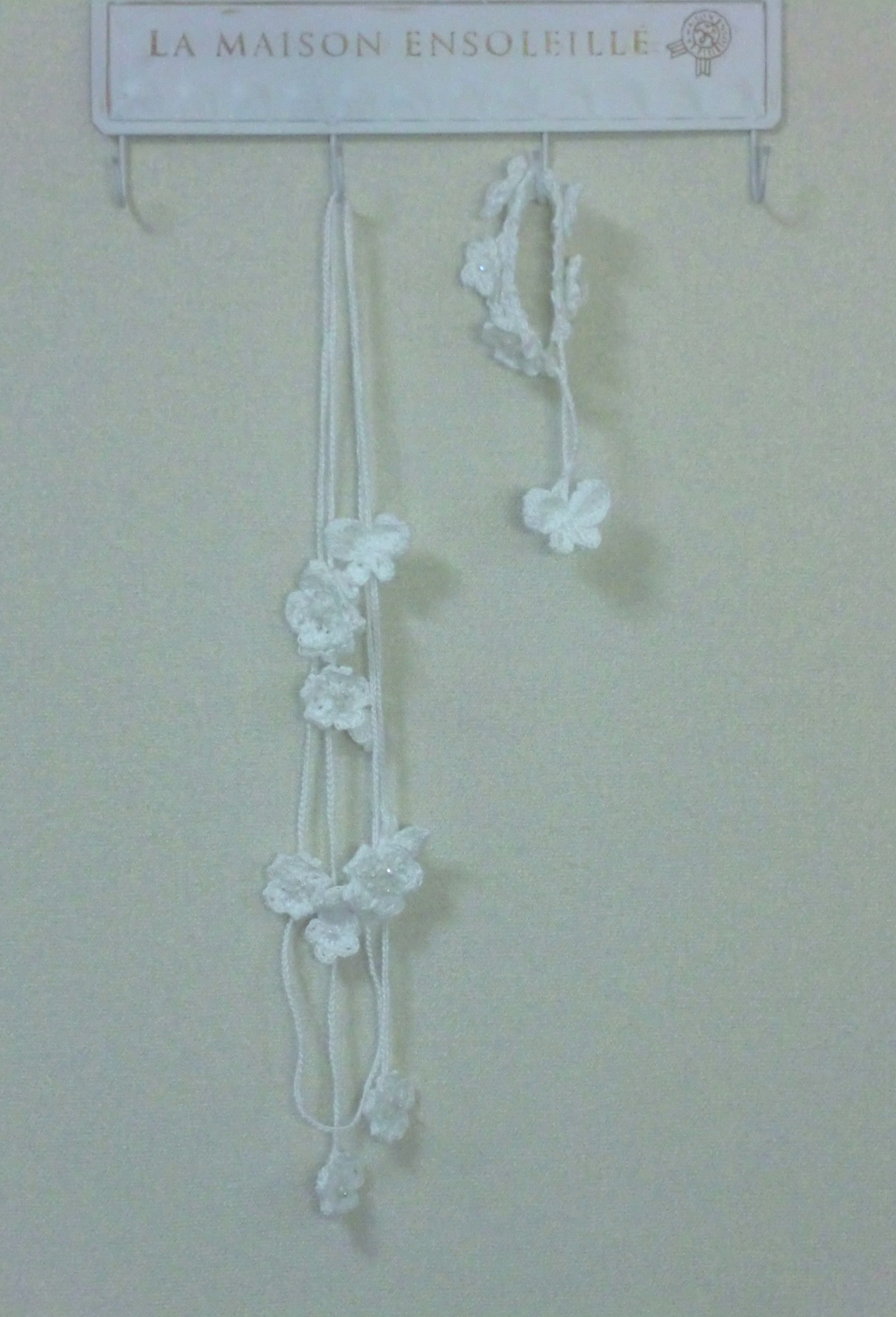 19。 蝶と小花のホワイトラリエット