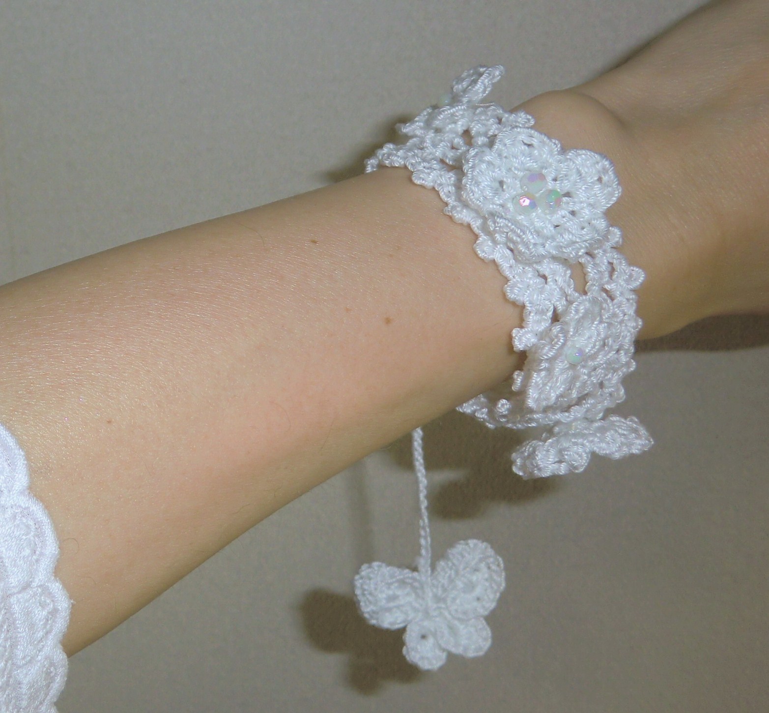 蝶と小花のホワイトブレスレット