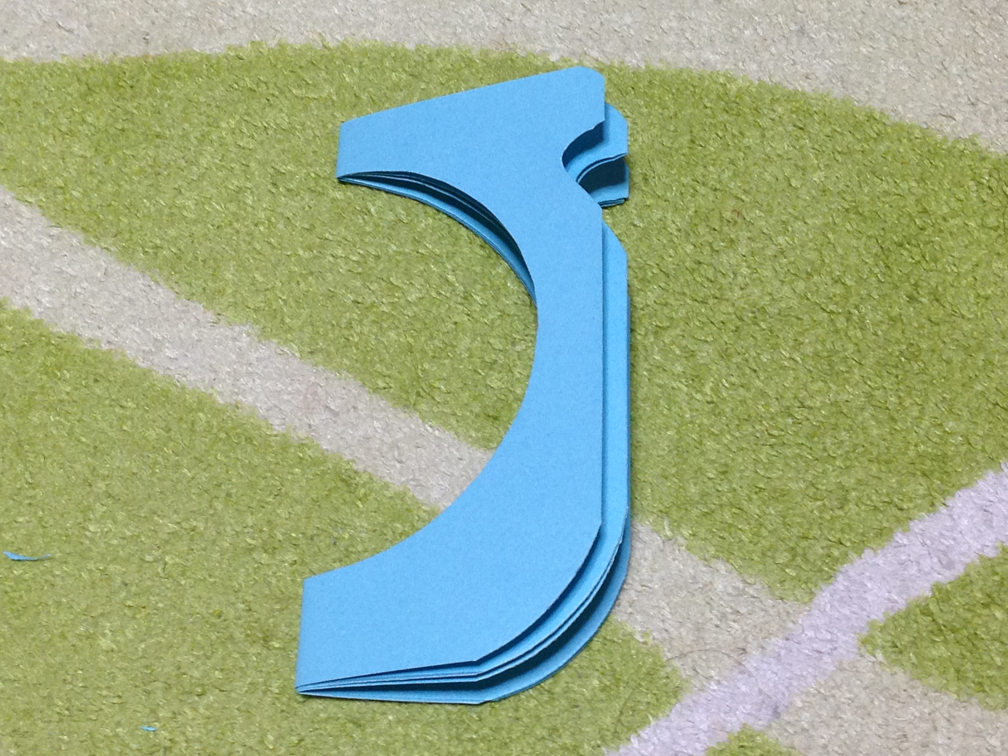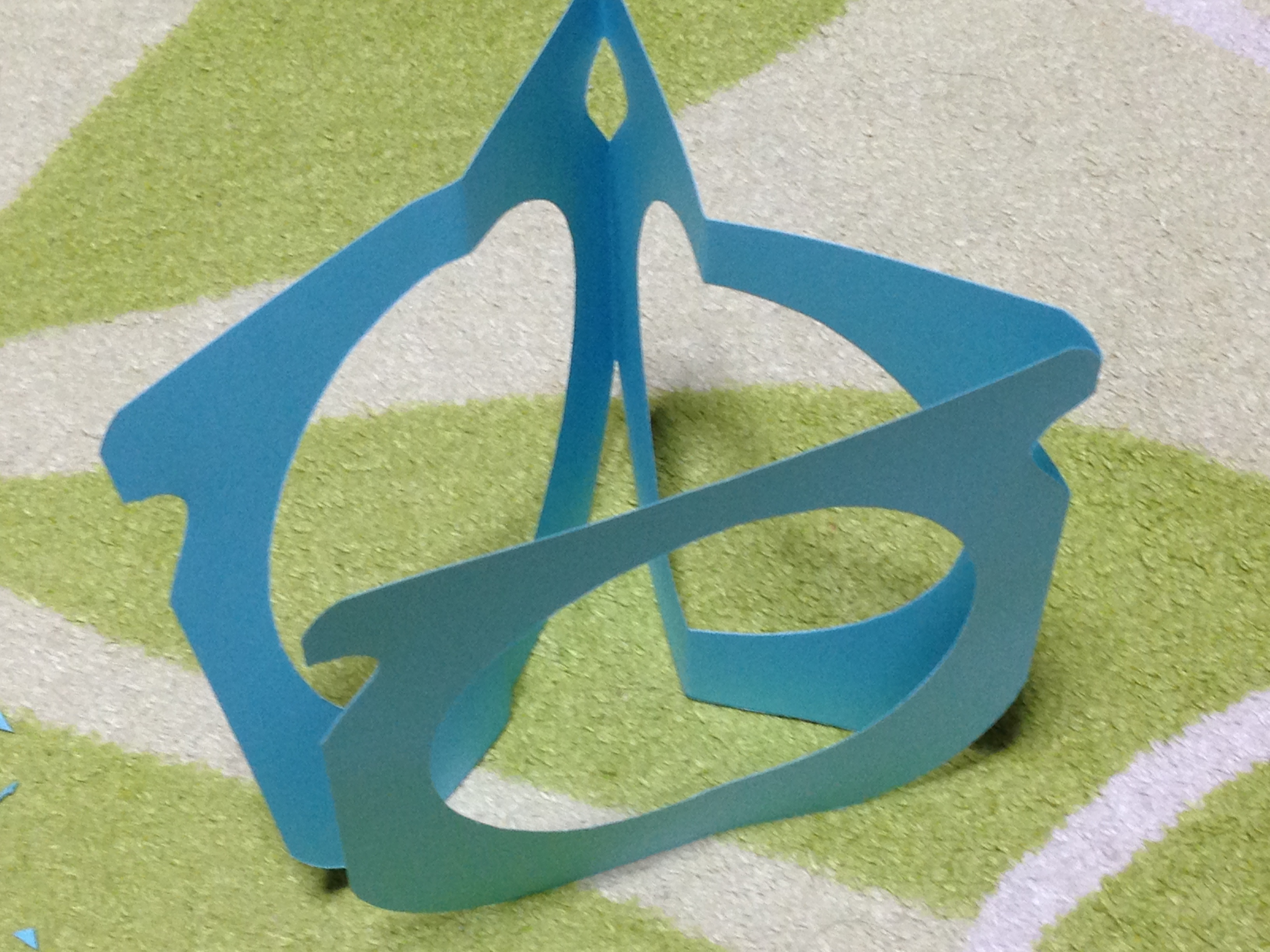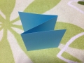 三つに折って、さらに半分真ん中に丸い穴をあけ