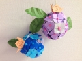 花は16等分の折り紙を縦横に折り山を付けるだけの物です 小さく切ったお花紙を濡らした手で丸め花の真ん中にボンドで貼ります 丸めた新聞紙を新聞で包んでボンドで紐と一緒に止め芯を作ります 芯に花を貼って行きます 緑の包装紙で葉を作り二枚貼り 肌色の折り紙でカタツムリを作ってガムテープで貼り、出来上がりです お花紙を丸めるなど簡単な行程からカタツムリを作るなどレベル別に分担出来るレクリエーションかと思います